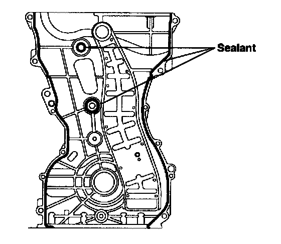 3) After applying liquid sealant Loctite 5900 on timing chain cover. The part must be assembled within 5 minutes after sealant was applied. Sealant should be applied without discontinuity.