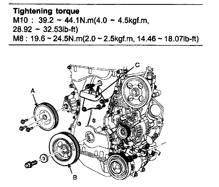 Tightening torque 7.84 - 9.8 Nm (0.8 - 1.0 kgf.m, 5.78 - 7.23 ft. lbs.)