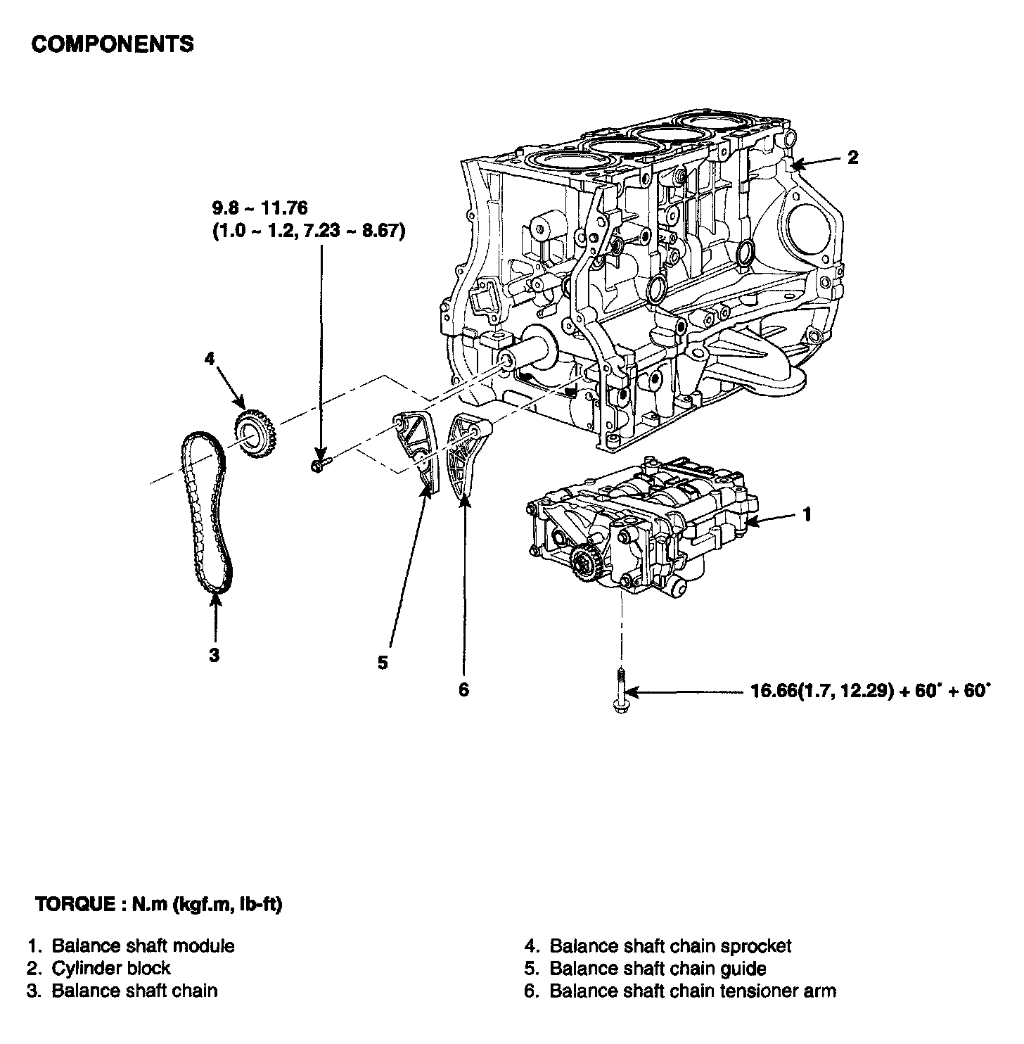6. Remove balance shaft chain (B) and balance shaft module (A).