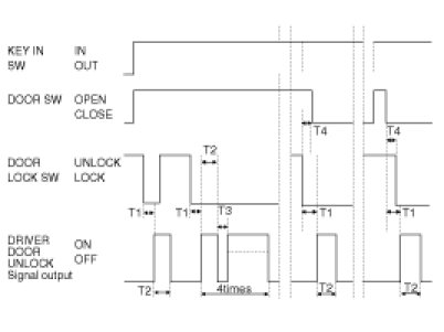 (3) Lock signal is output 3 times as Max ((2) is ignored) if either one door is unlocked after lock signal output in (2).(1s cycle) But, door, which is locked from unlock state during 3-time output, is ignored.