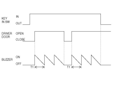 (1) If the key is in the key cylinder and the driver door is opened, the buzzer is sounded (period: 0.7 sec., duty rate: 50%).