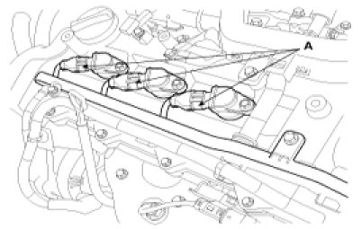 To prevent fuel being injected from injectors while the engine is being cranked, remove the fuel pump(A) relay from the fuse box.