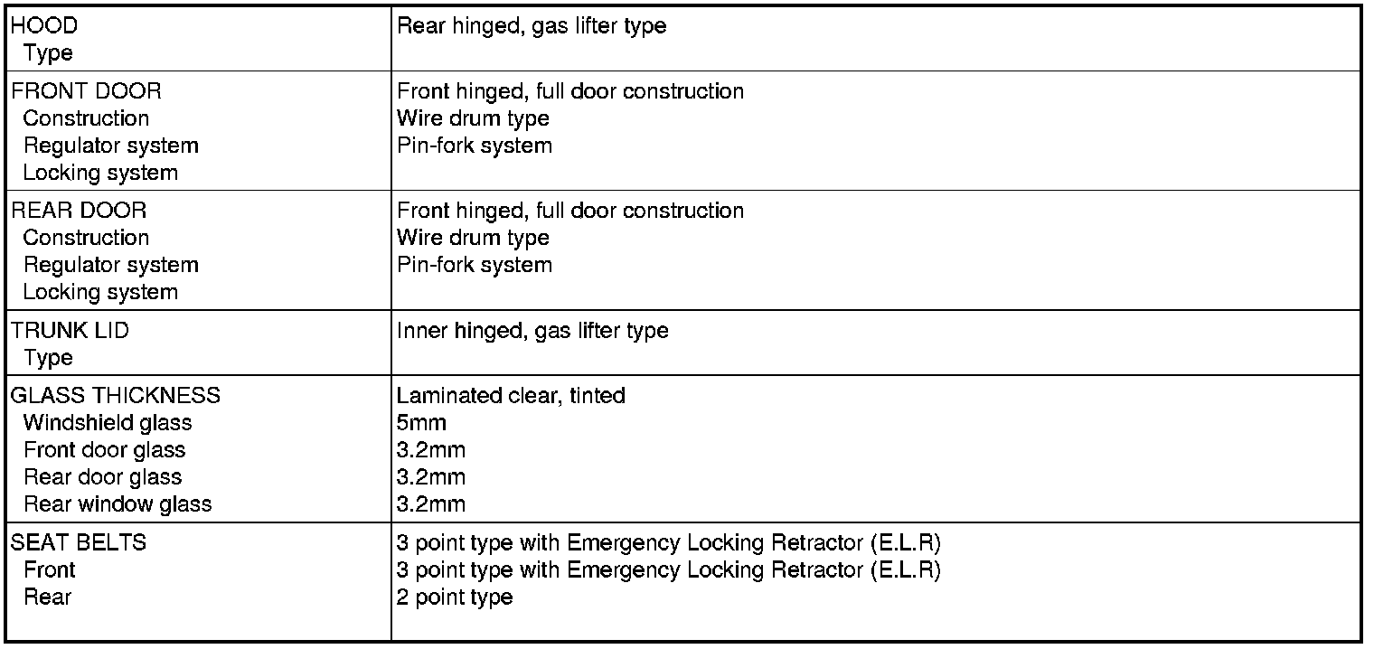 Body and Frame: Specifications