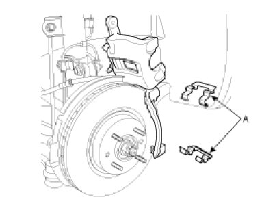 4. Push in the piston (A) using the SST(09581-11000) so that the caliper will fit over the pads. Make sure that the piston boot is in position to prevent damaging it when pivoting the caliper down.