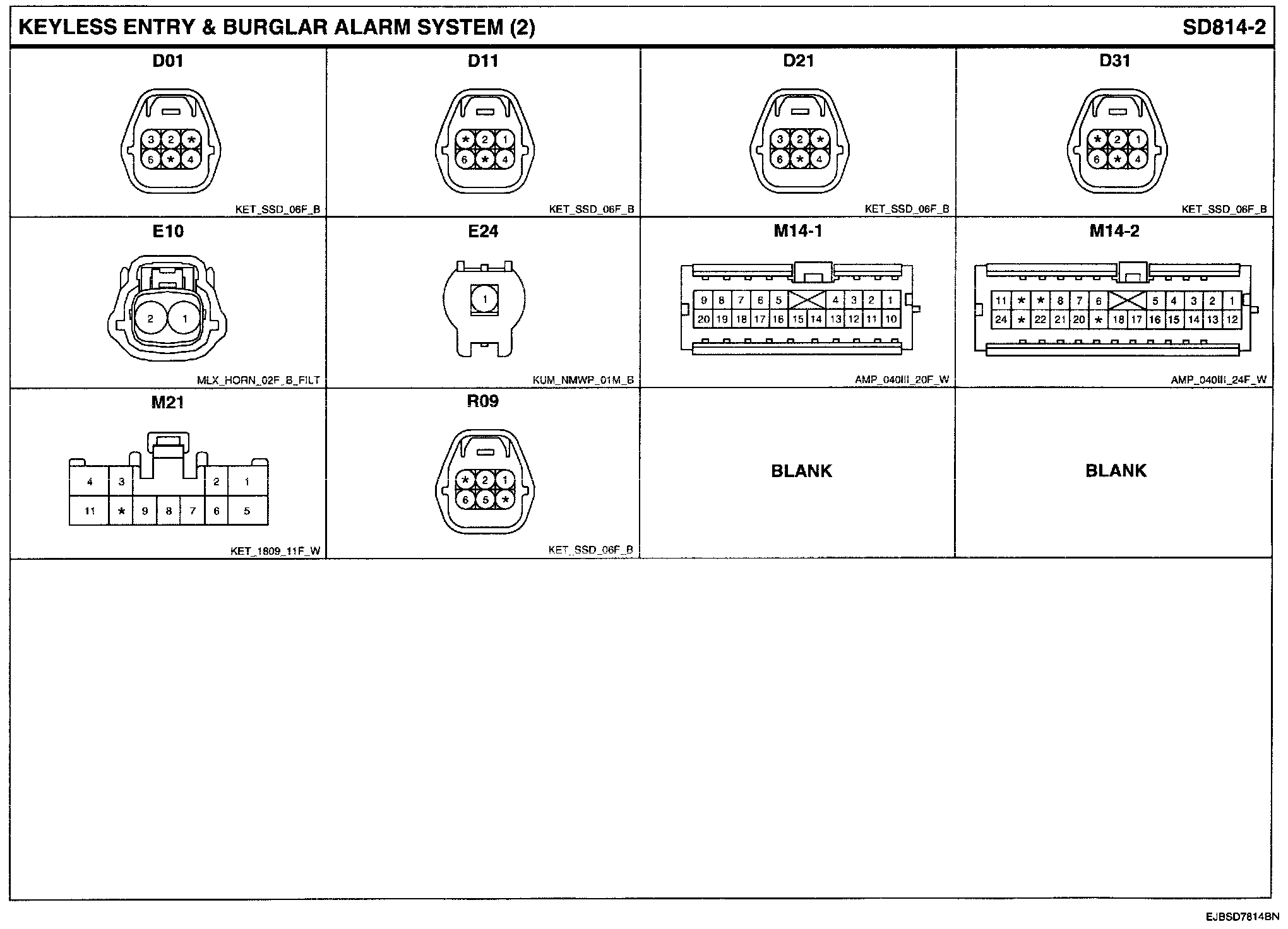 Keyless Entry & Burglar Alarm System Connector Pin Outs: