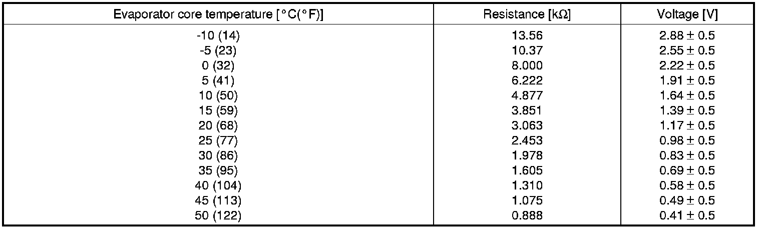 4. If the measured resistance is not specification, substitute with a known-good evaporator temperature sensor and check for proper operation.