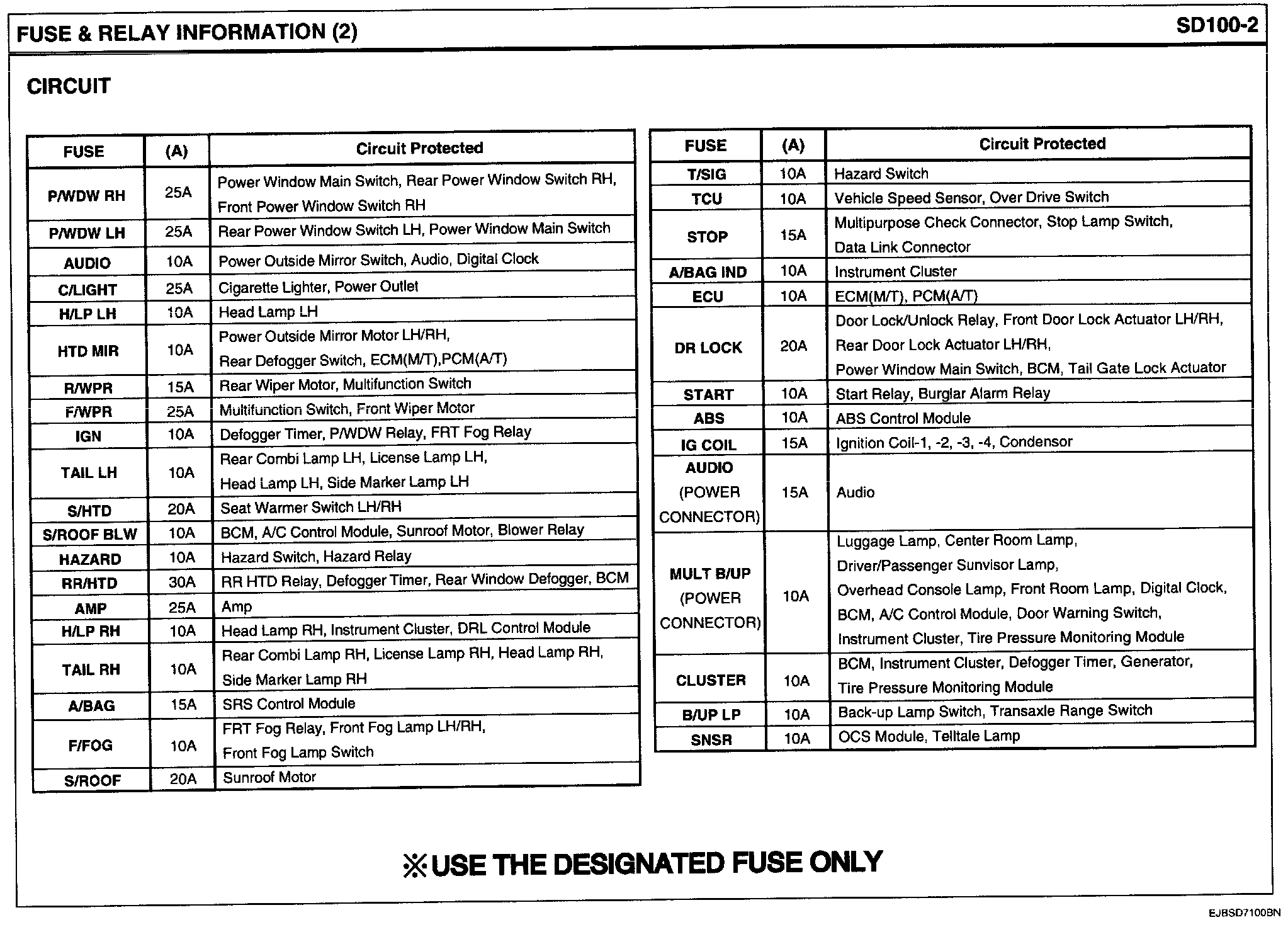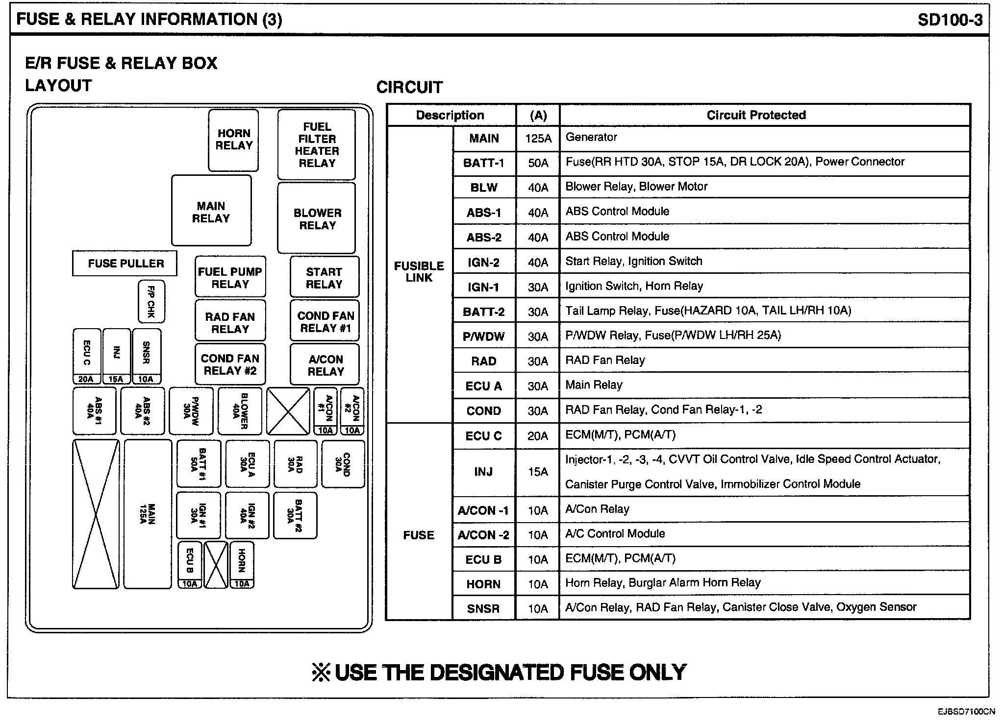 E/R Fuse & Relay Box View & Circuit Details: