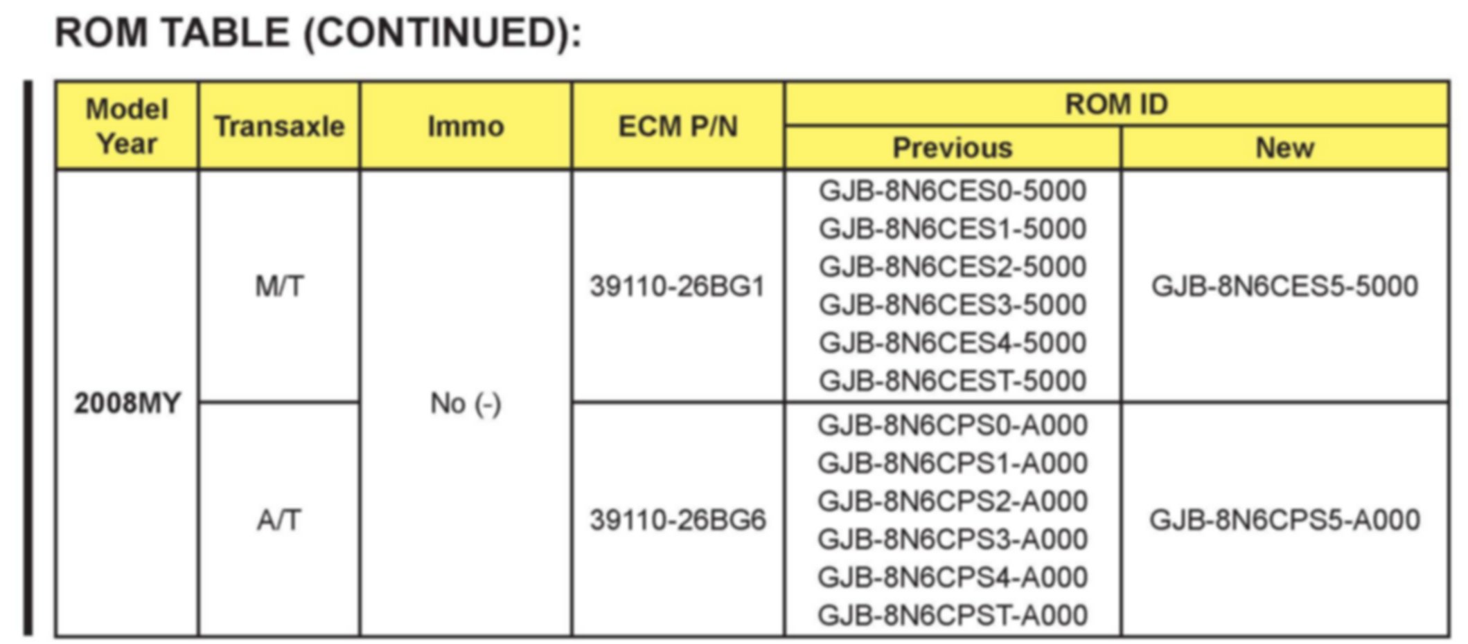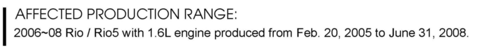 *This bulletin provides the procedure to upgrade the Engine Control Module (ECM) of some 2006~2008 RIO/RIO5 (JB) 1.6L vehicles produced Sep. 27, 2006 to June 31, 2008 which may experience a rough idle during initial cold start-up period and/or illuminate the MIL with DTC's below. The ECM update addresses engine roughness/misfire that may occur in the first minute of idle after cold start with coolant temperature ranging from 30-70°F and other indicated upgrades referenced below. If the engine misfire continues beyond this period refer to service manual diagnostic procedures involving engine mechanical and engine control hardware issues. For confirmation that the latest reflash has been done to a vehicle you are working on, verify ROM ID using the tables in this TSB. This TSB supercedes all previous Rio Mis-fire P0300 publications except SA032. Please discard any paper copies printed prior to March 2010 to ensure correct ROM ID is installed.*