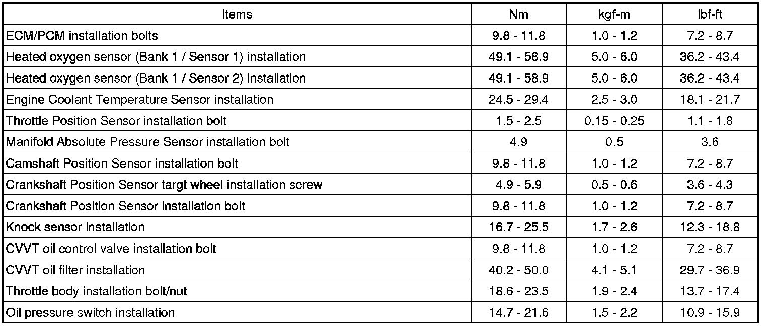 TIGHTENING TORQUES