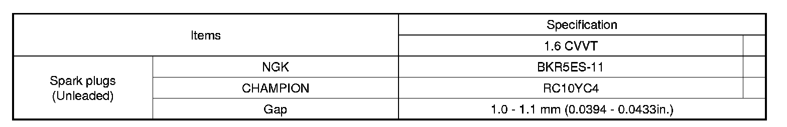Spark Plug: Specifications