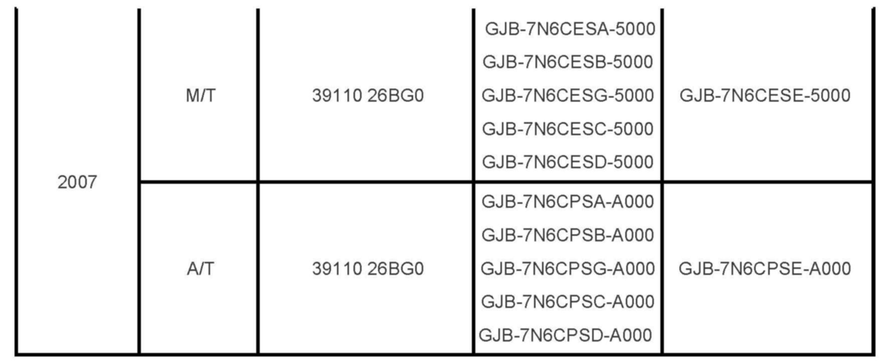2007 MY Rio vehicles with 1.6L engine produced between 9/27/2006 ~ 8/25/2007.