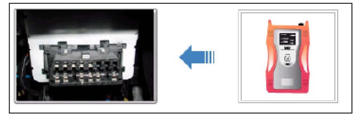 4. Connect the Main 16-pin DLC cable (GHDM - 241000) to the OBD-II connector located under the driver's side of the instrument panel.