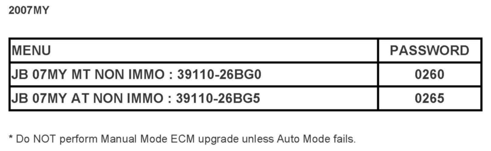 MANUAL MODE ECM UPGRADE PASSWORDS