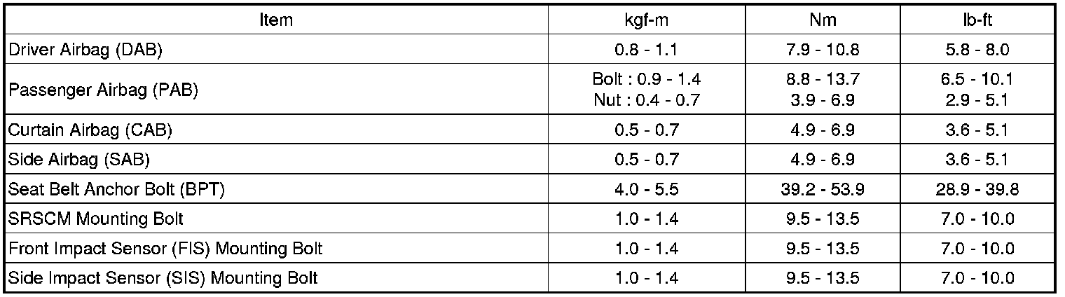 TIGHTENING TORQUES