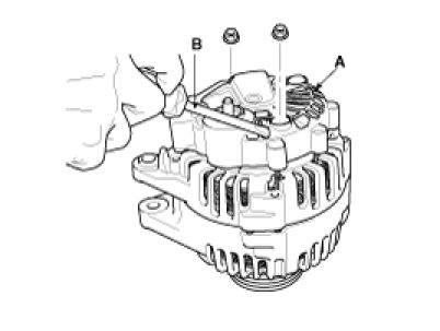 2. Loosen the mounting bolts(A) and disconnect the brush holder assembly(B).