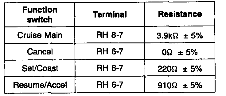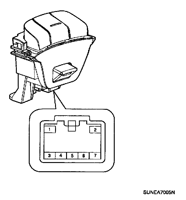 2. Measure resistance between terminals on the control switch when each function switch is ON (switch is depressed).