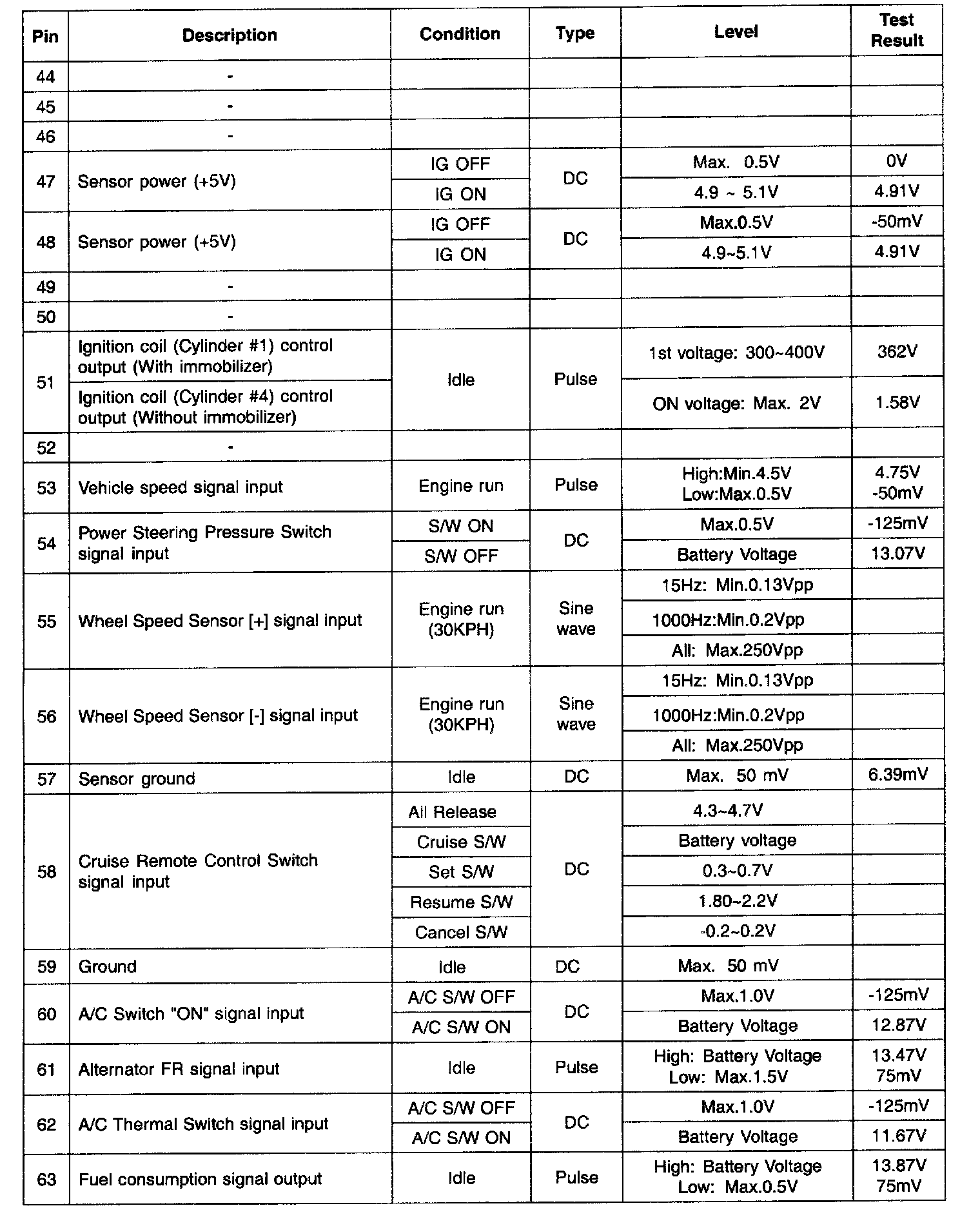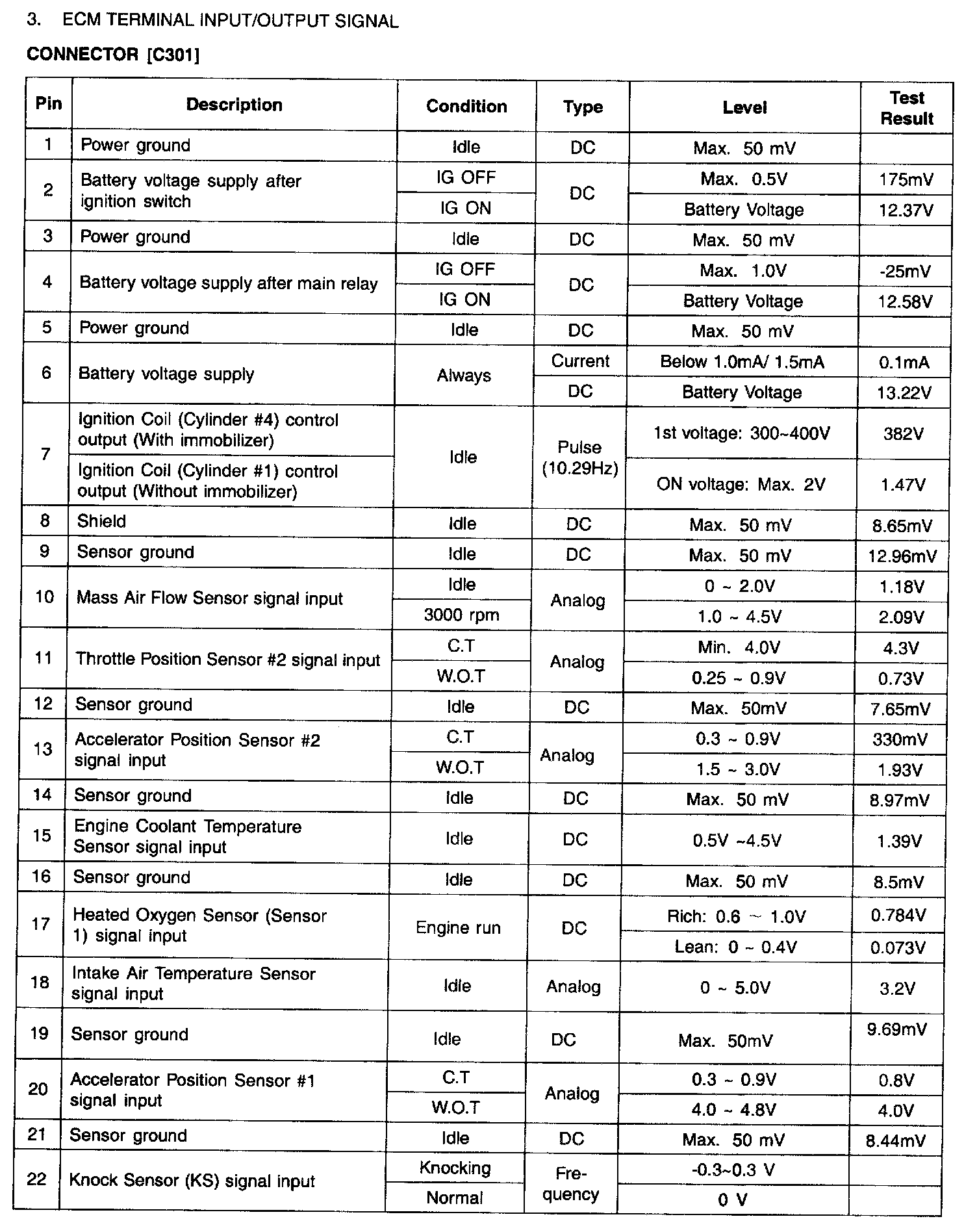 ECM TERMINAL INPUT/OUTPUT SIGNAL - CONNECTOR [C301]