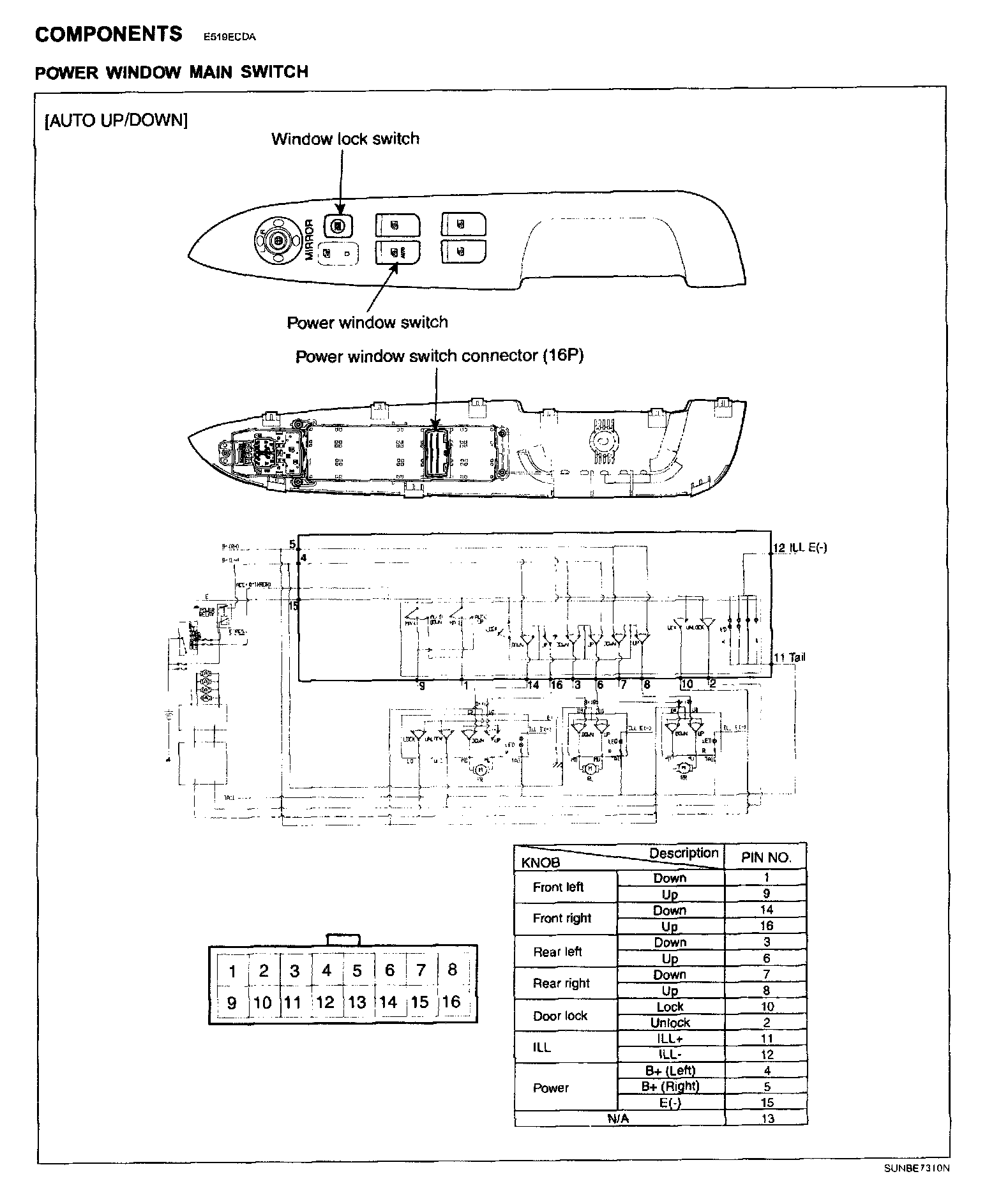 Power Window Main Switch - Components:
