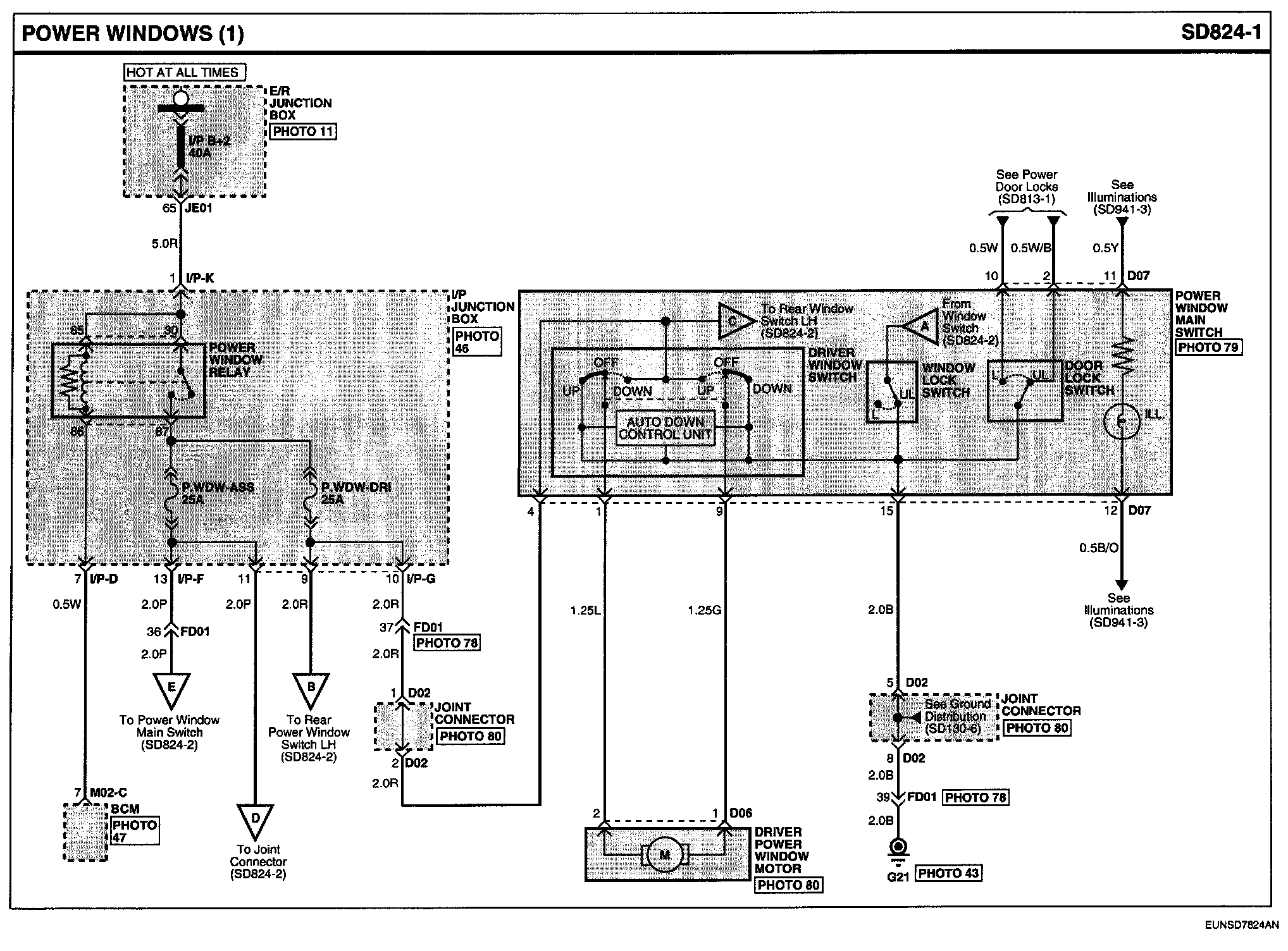 Power Windows Connector Pin Outs: