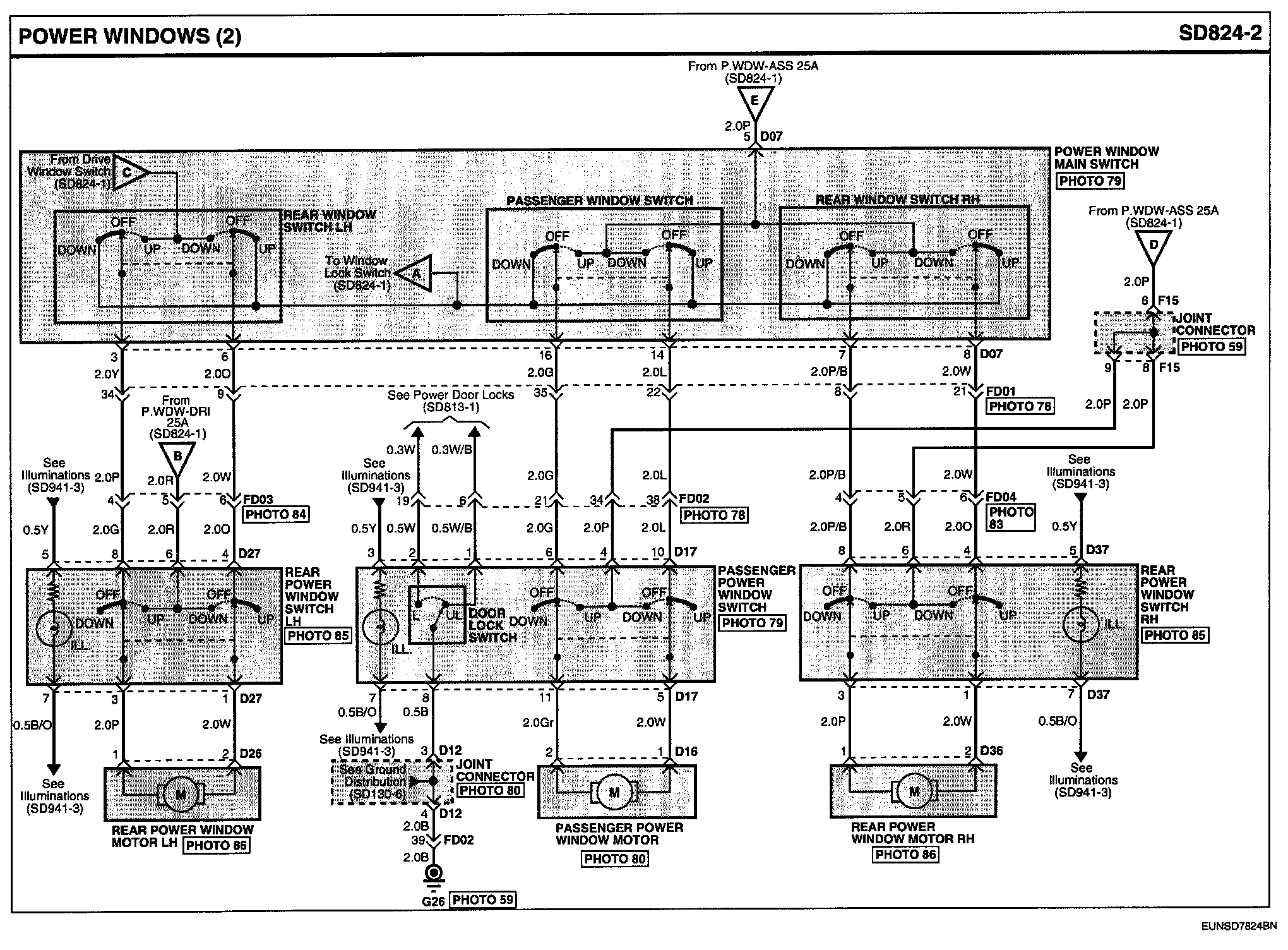 Locations: Location photographs (references to PHOTOS) referred to within these diagrams can be found via the photo number at the vehicle level under Locations by Photo Number. Component Locations