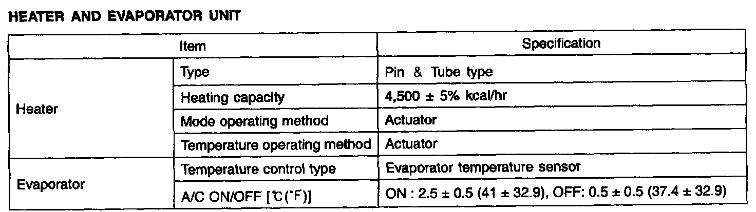 Heater And Evaporator Unit - Specification: