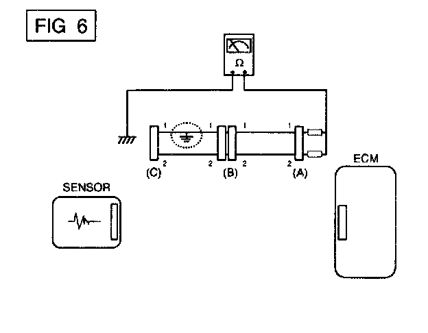 a. Disconnect connectors (A), (C) and measure for resistance between connector (A) and Chassis Ground as shown in [FIG. 6].