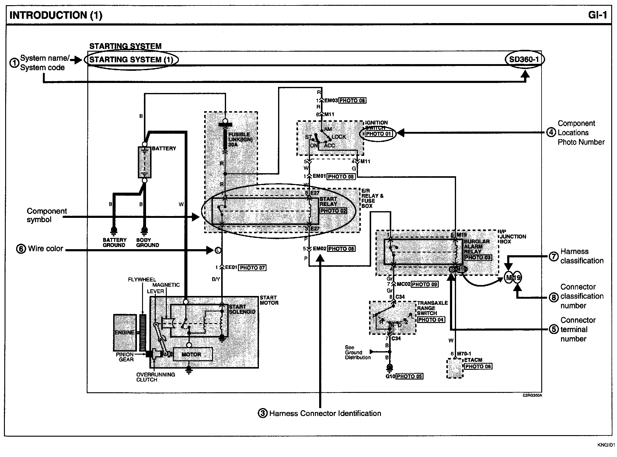 A connector identification symbol consists of a wiring harness location classification symbol corresponding to a wiring harness location and number corresponding to the connector.