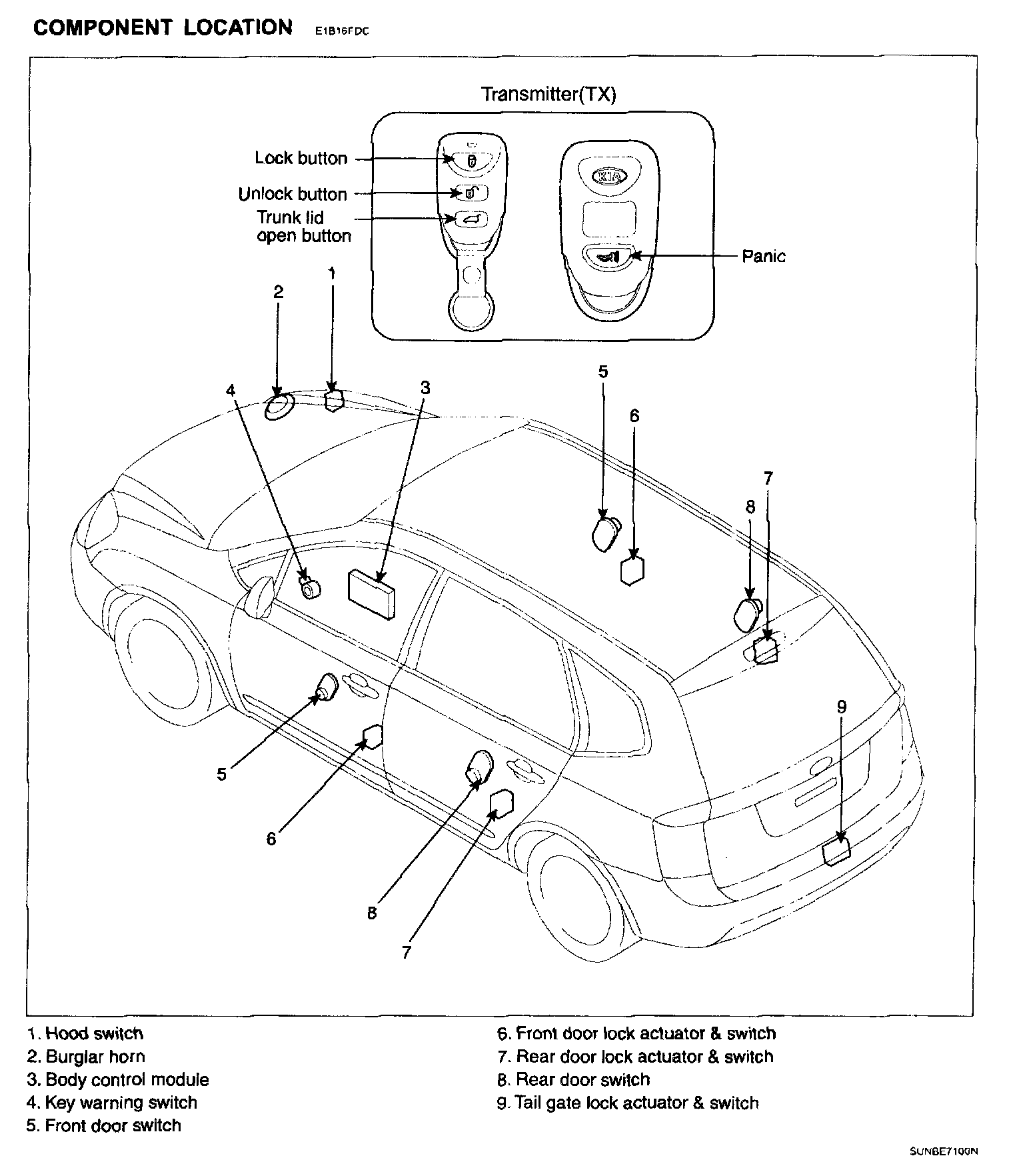 Keyless Entry And Burglar Alarm - Component Location: