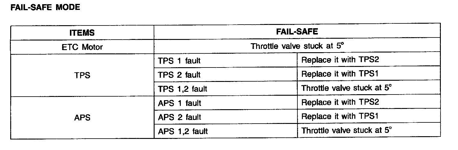 NOTE: When throttle value is stuck at 5°, engine speed is limited at below 1,500 rpm and vehicle speed at maximum 40 - 50 km/h (25 - 31 mph).
