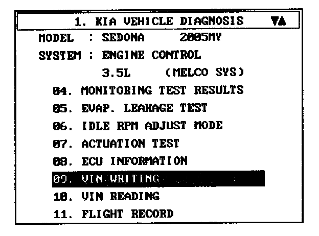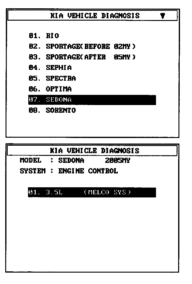 1. Select "Vehicle" and "Engine" (For example, SEDONA 3.5L V6).