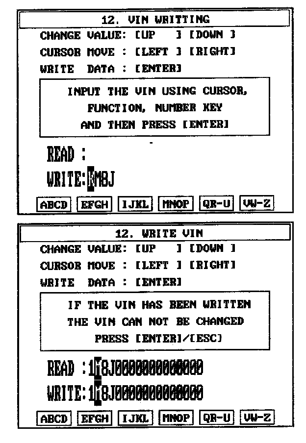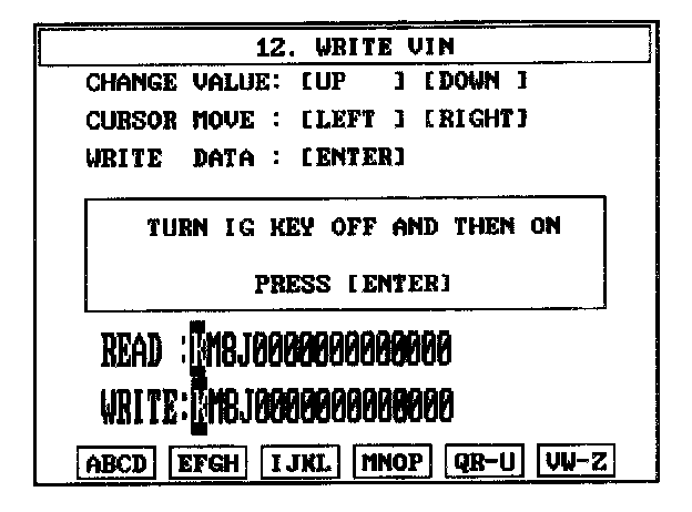 4. Write the VIN with cursor, function and number keys.