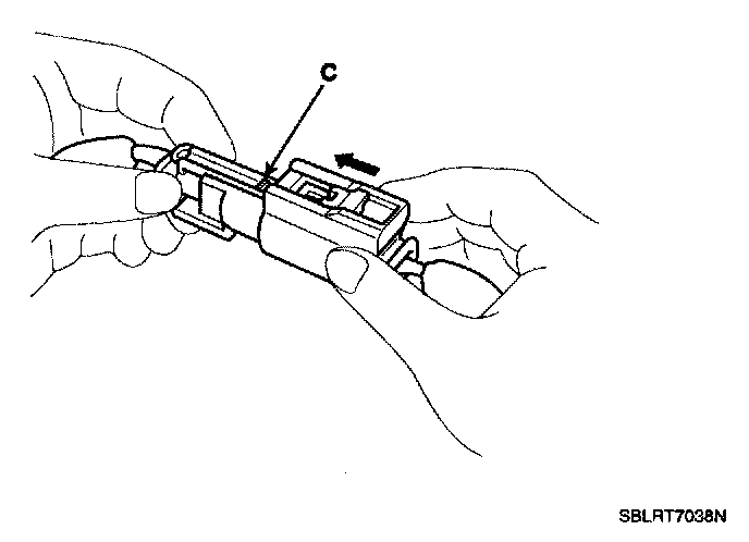 Hold both connector halves and press firmly until the projection (C) of the sleeve-side connector clicks to lock.