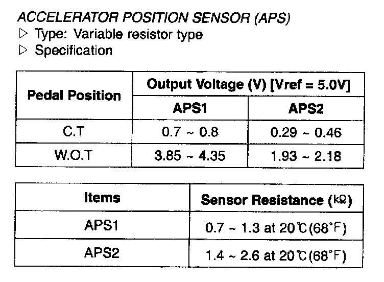Accelerator Position Sensor (APS) - Specification: