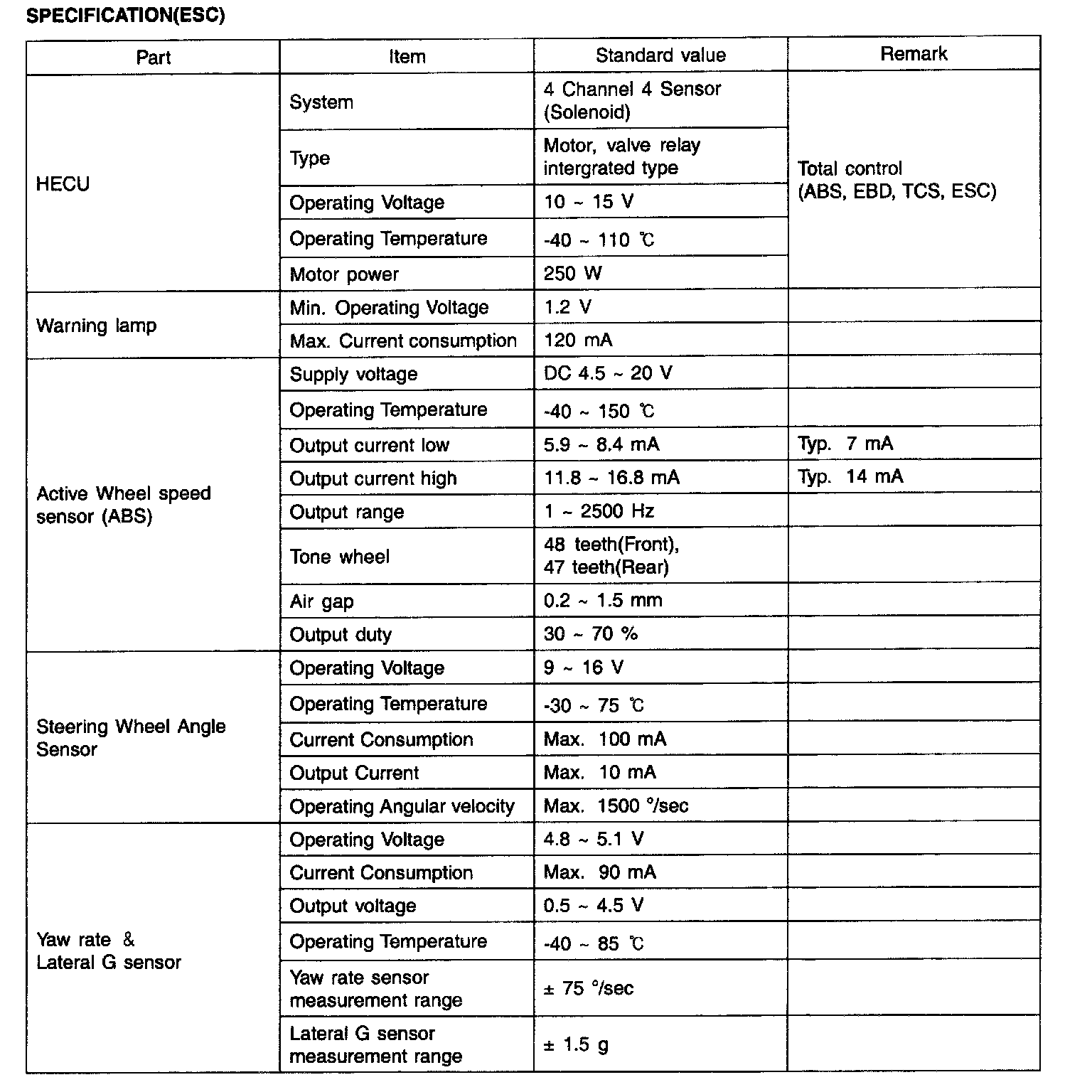 SPECIFICATION(ESC)