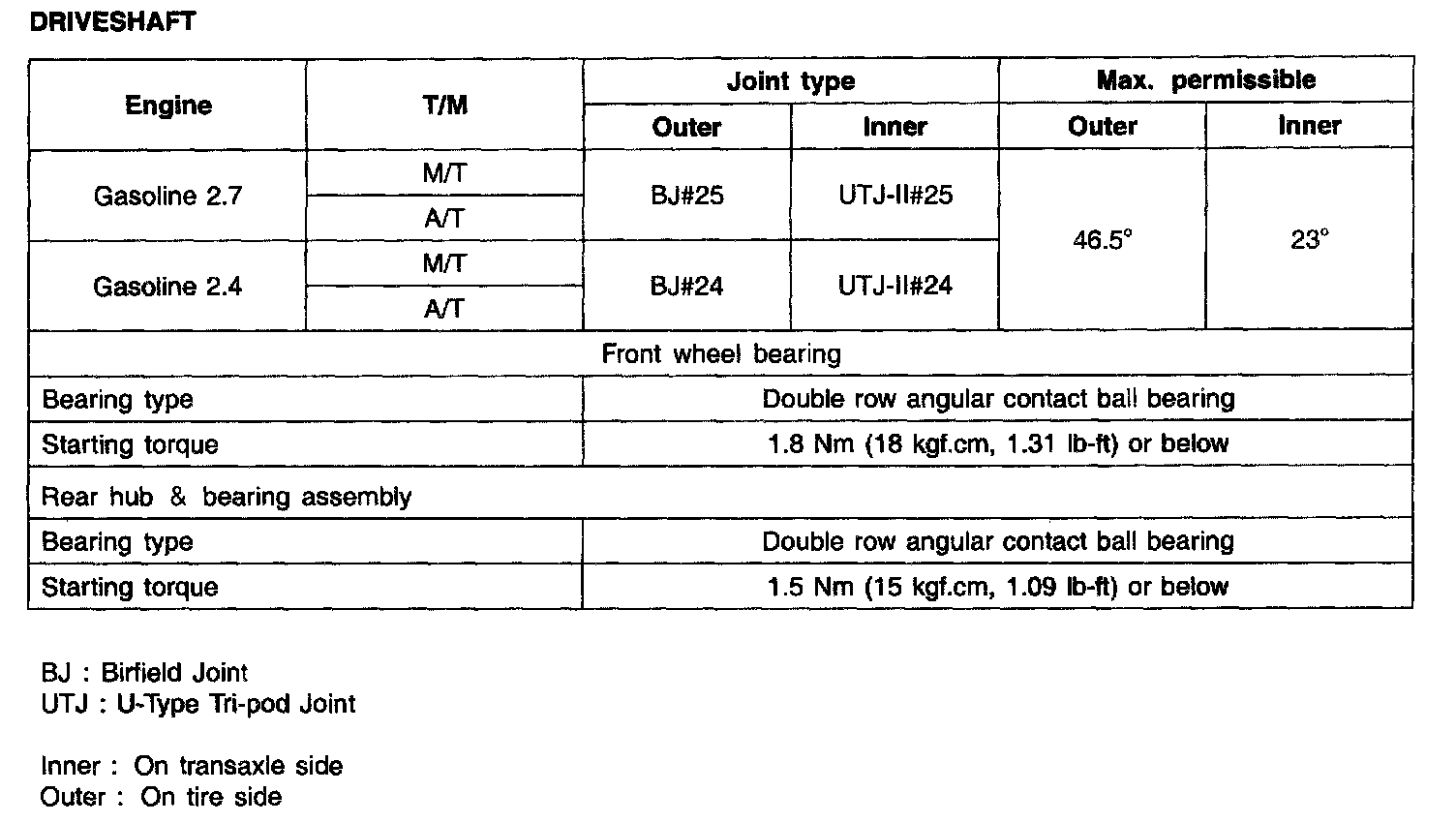 Drive Axles, Bearings and Joints
