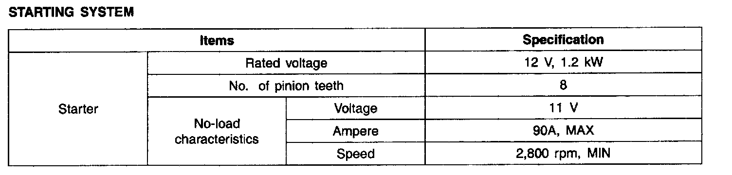 Starting System - Specification: