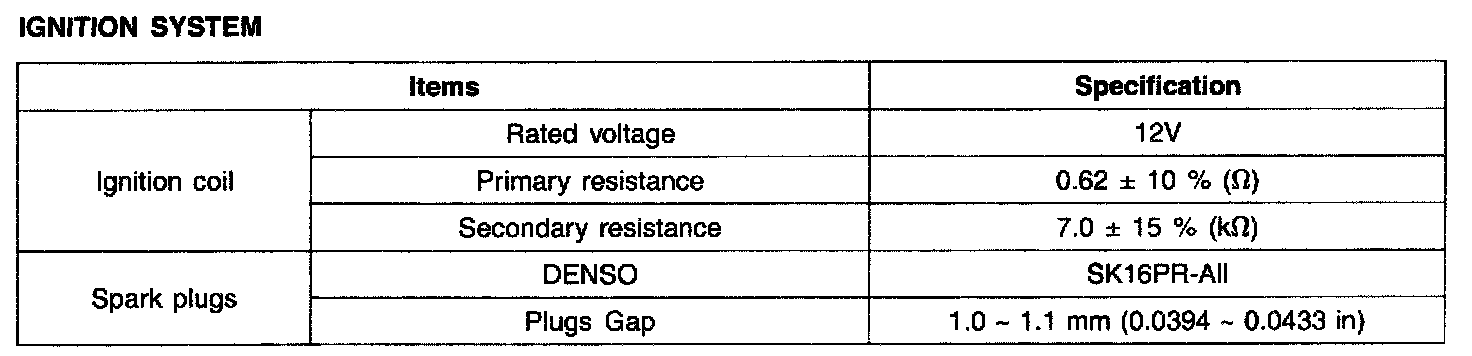 Ignition System - Specifications: