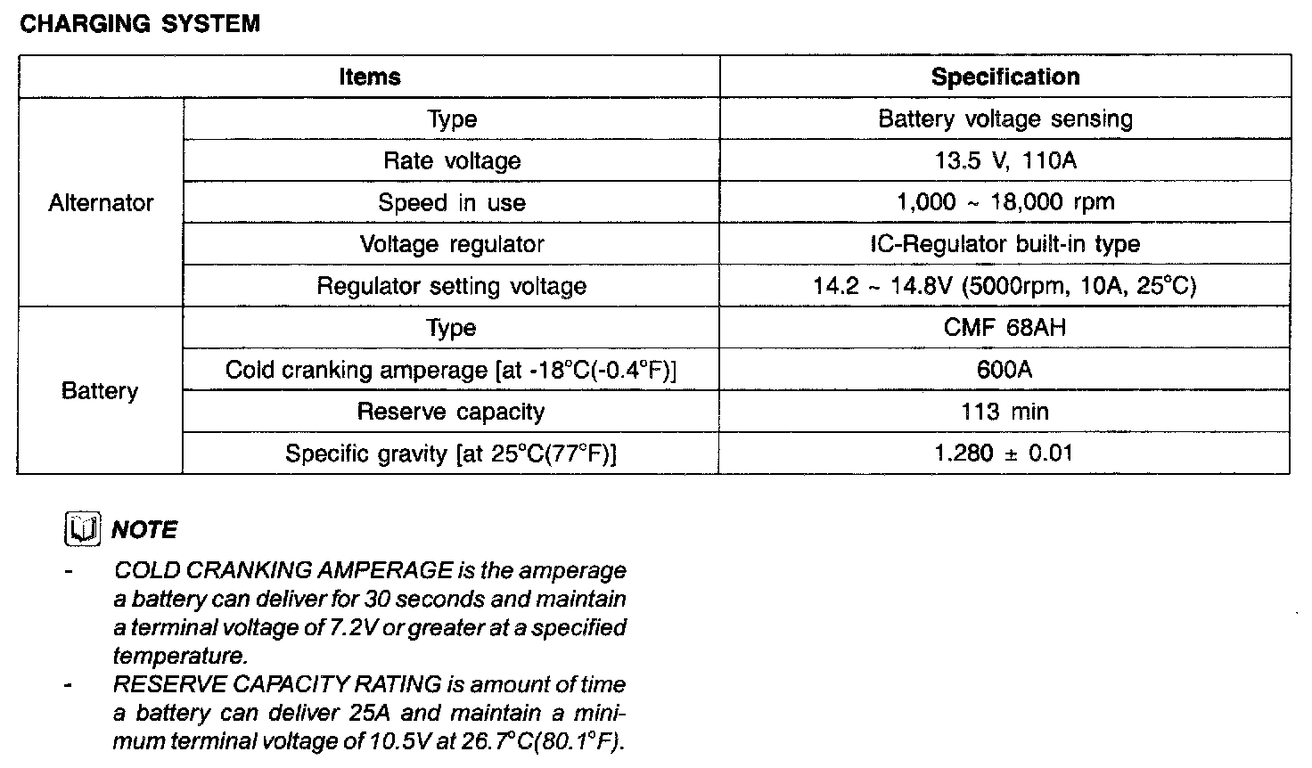 Charging System - Specifications: