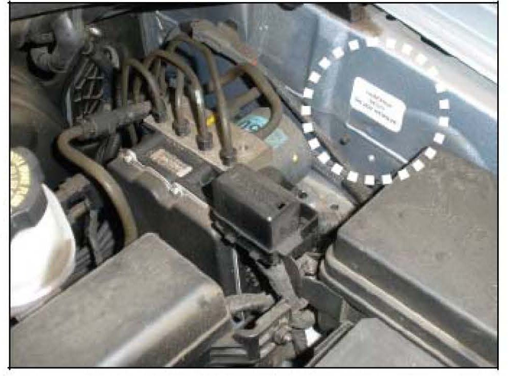 7. Attach campaign completion sticker SC077 to the driver's side inner fender as shown here.