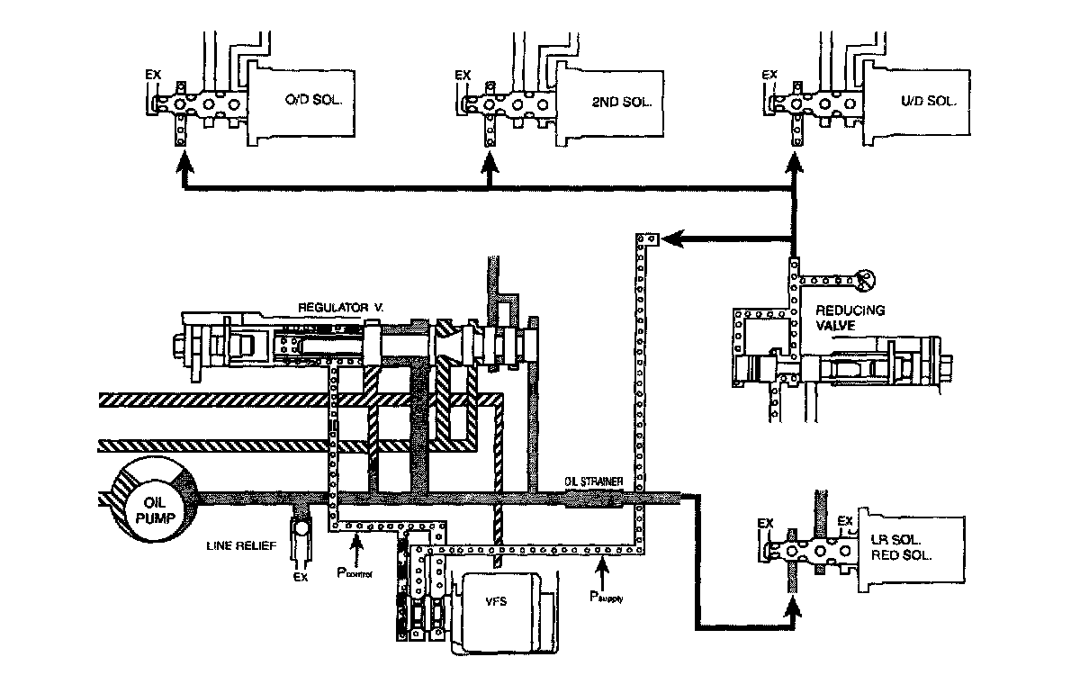 The reducing pressure will be supplied to the Supply' port of the VFS valve on the above illustration to control the line pressure.
