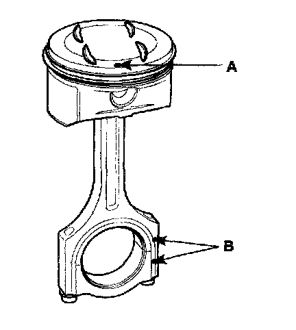 2) The piston front mark(A) and the connecting rod front mark must face the timing belt side of the engine.