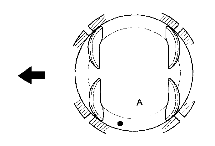 Install the 2 thrust bearings(A) under the No.3 journal position of the cylinder block with the oil grooves facing outward.
