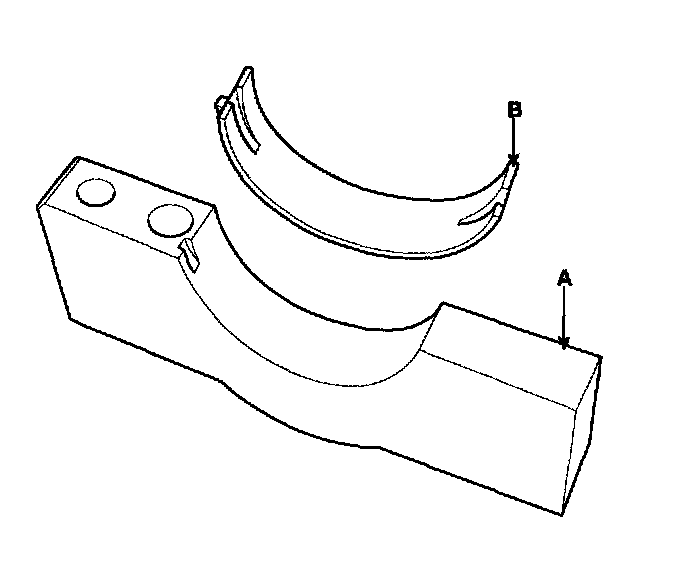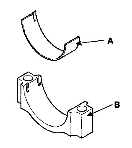2) Install the bearings(A) in the connecting rod and connecting rod cap(B).
