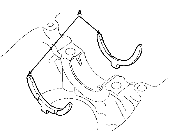 1) Aligning the bearing claw with the claw groove of the cylinder block, push in the 4 upper bearings(A).
