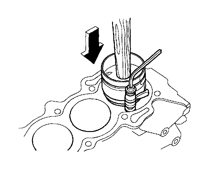^ Maintain downward force on the ring compressor to prevent the rings from expanding before entering the cylinder bore.