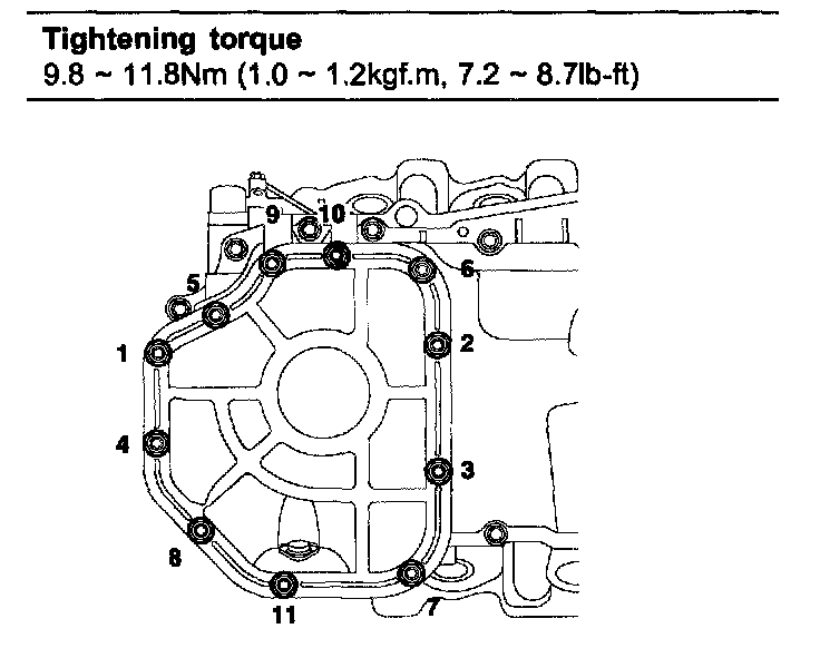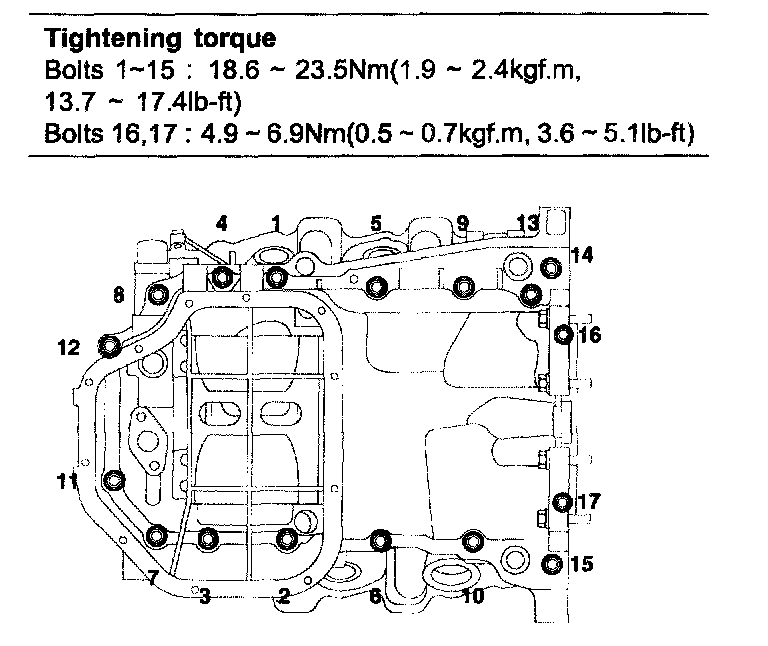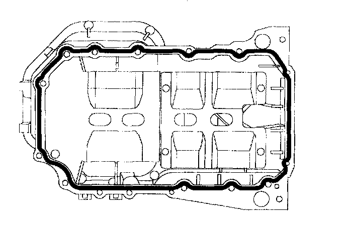 2) Before assembling the oil pan, the liquid sealant TB1217H should be applied on upper oil pan. The part must be assembled within 5 minutes after the sealant was applied.