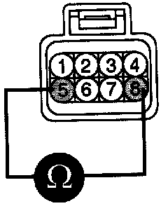 5. Measure resistance between ETC module terminals 7 and 6 (TPS 2).