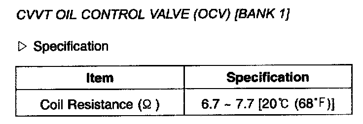 CVVT Oil Control Valve (OCV) [Bank 1] - Specification: