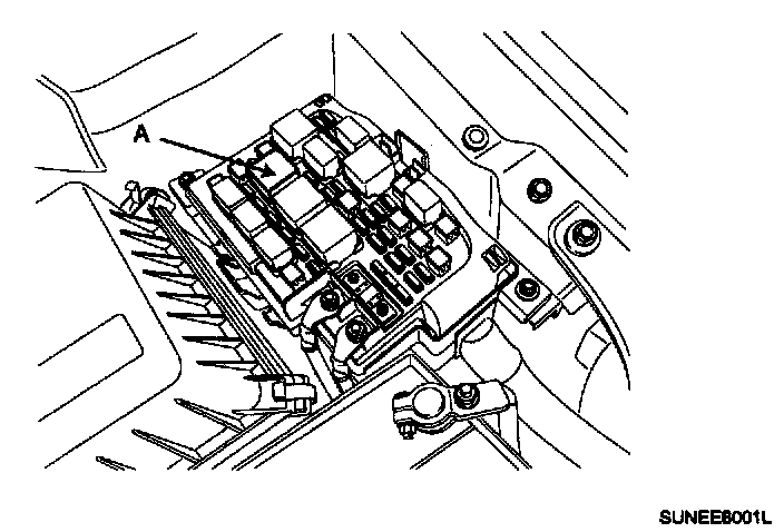NOTE: To prevent fuel being injected from injectors while the engine is being cranked, remove the fuel pump (A) relay from the fuse box. Crank the engine for no more than 5 - 10 seconds.