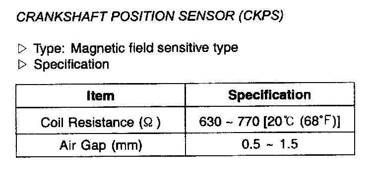 Crankshaft Position Sensor (CKPS) - Specification: